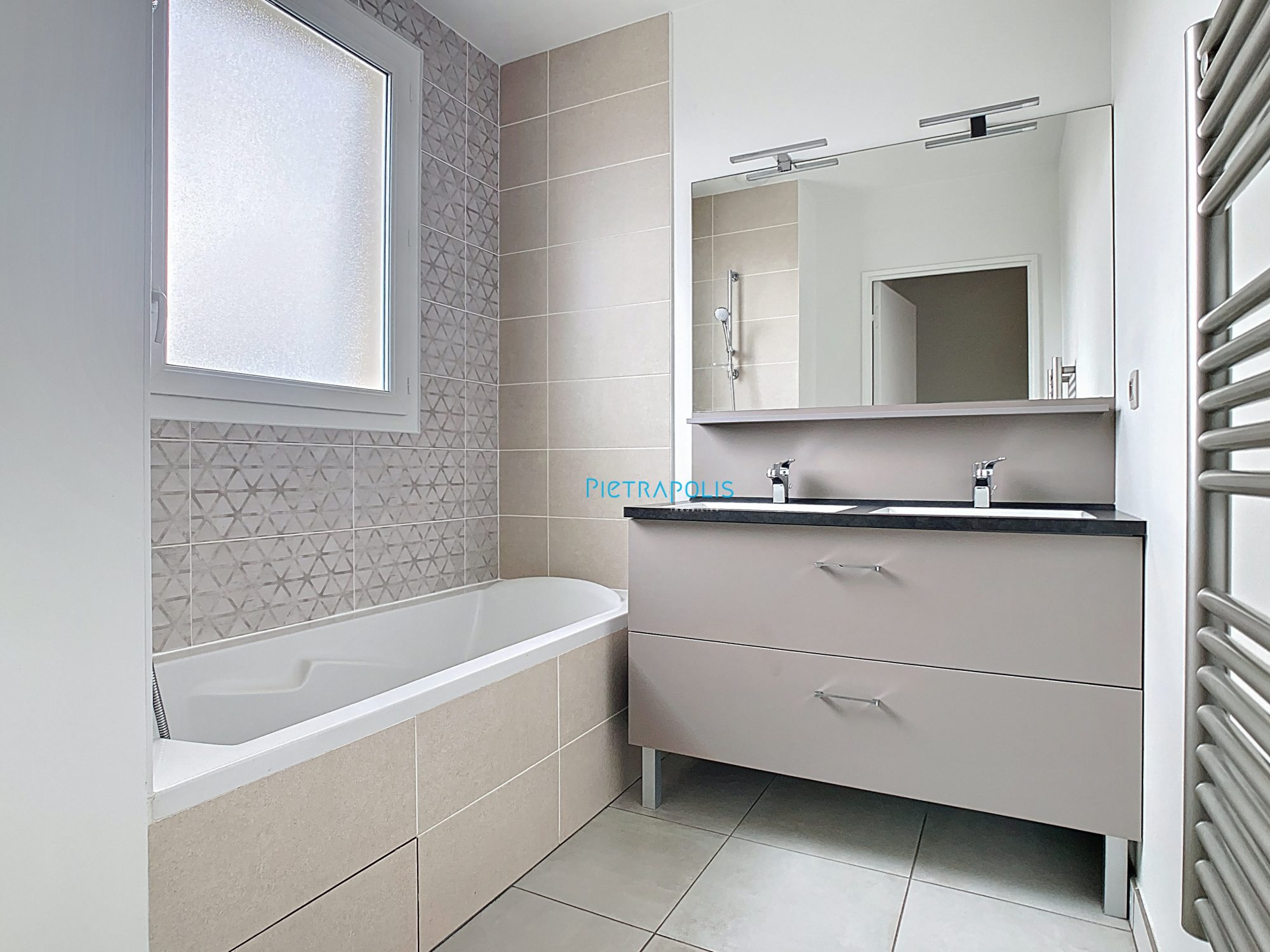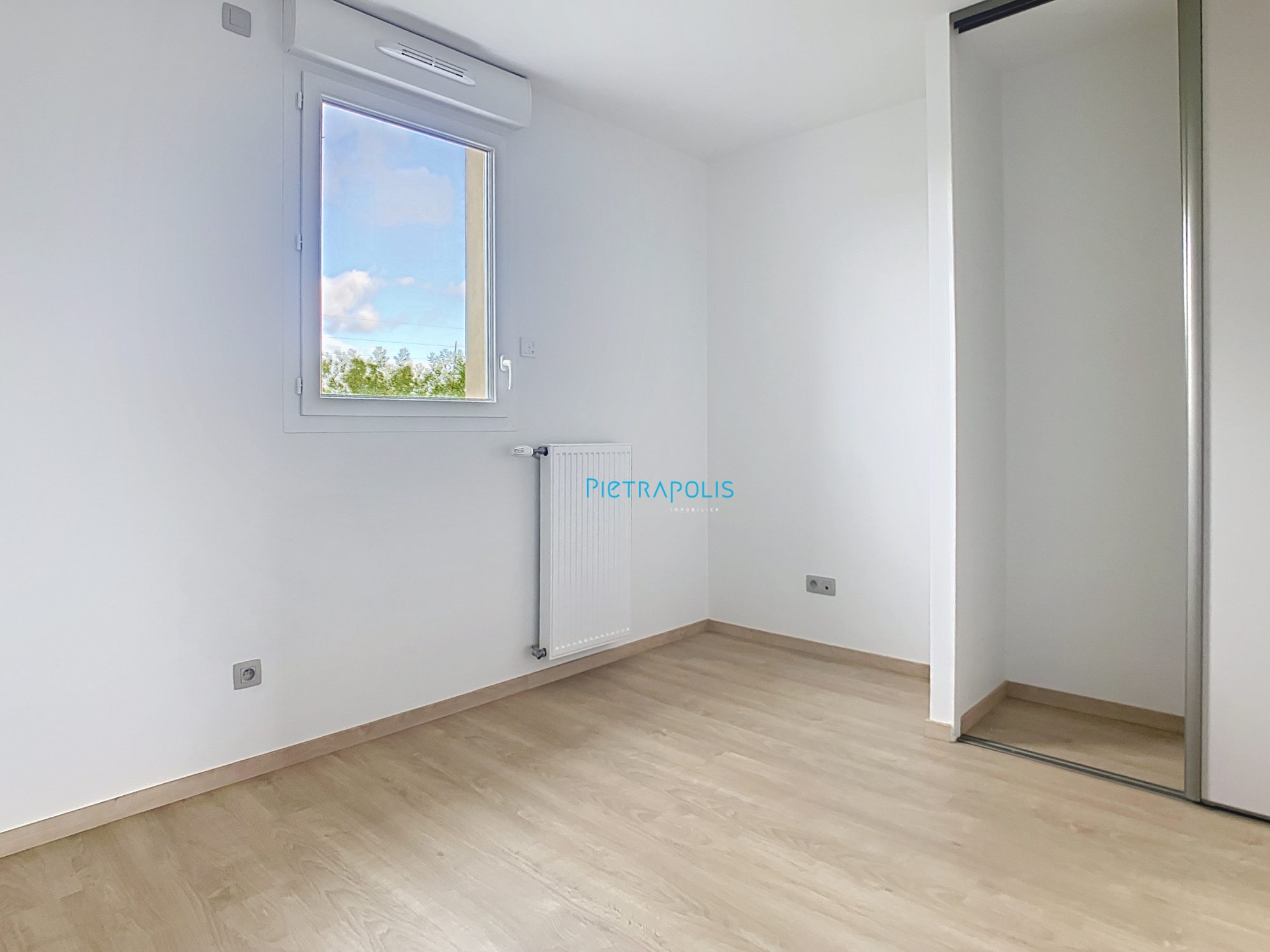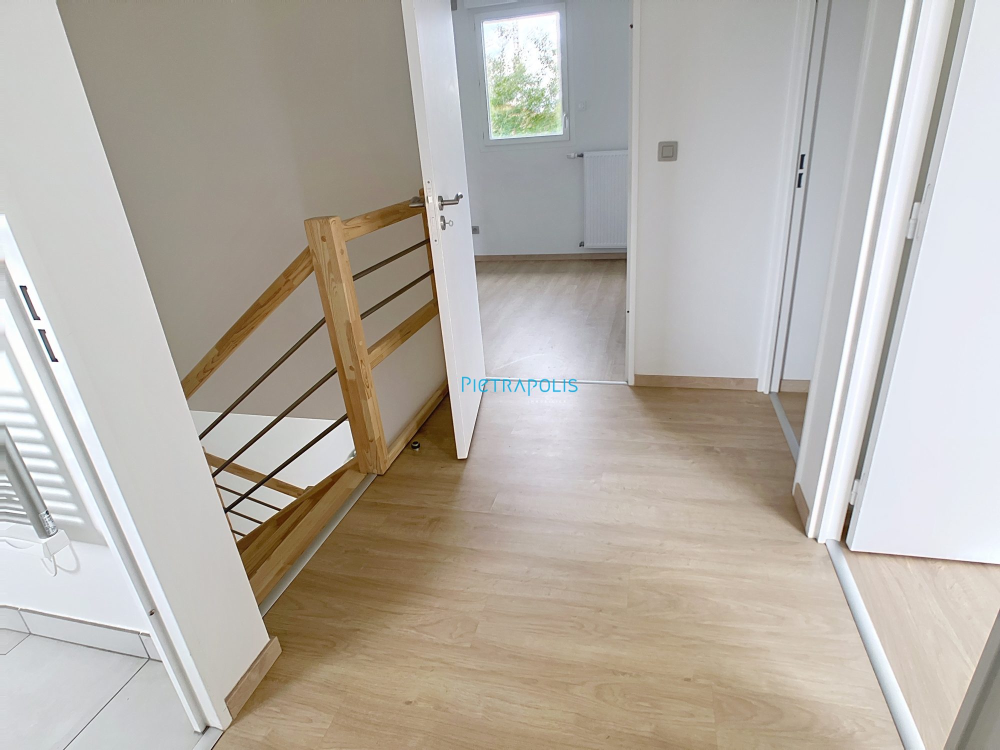 Duplex équipé de volets électriques - carrelage au rez-de-chaussée et parquet dans les chambres.