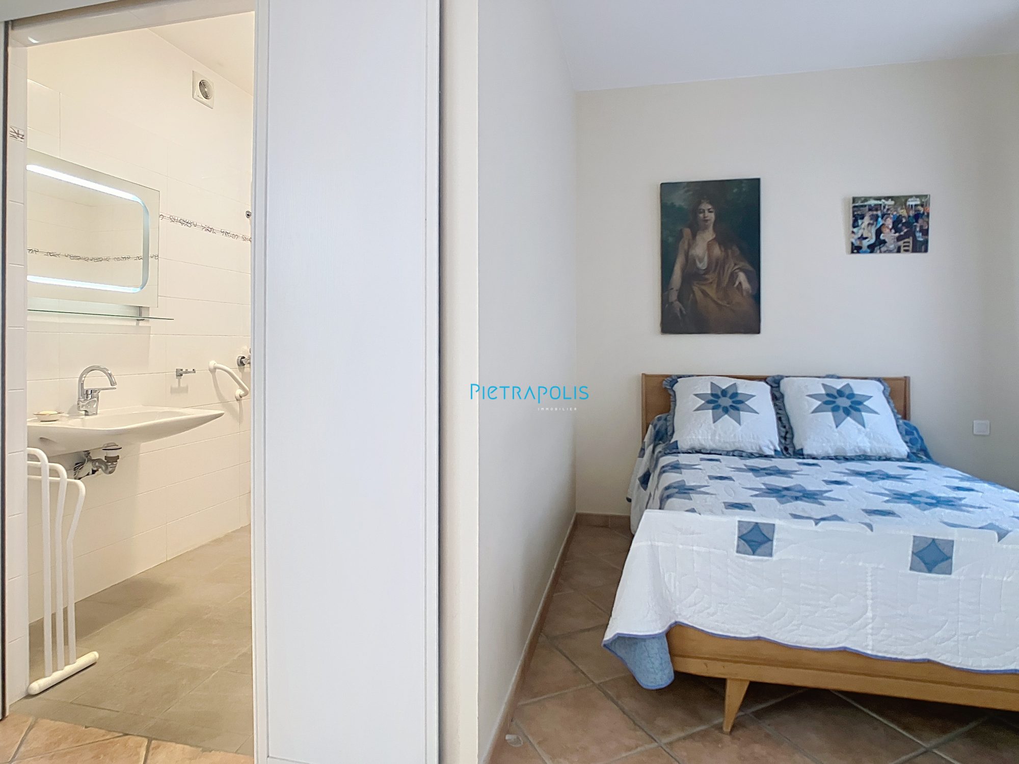 en rdc : chambre avec salle d'eau - salon /salle à manger
