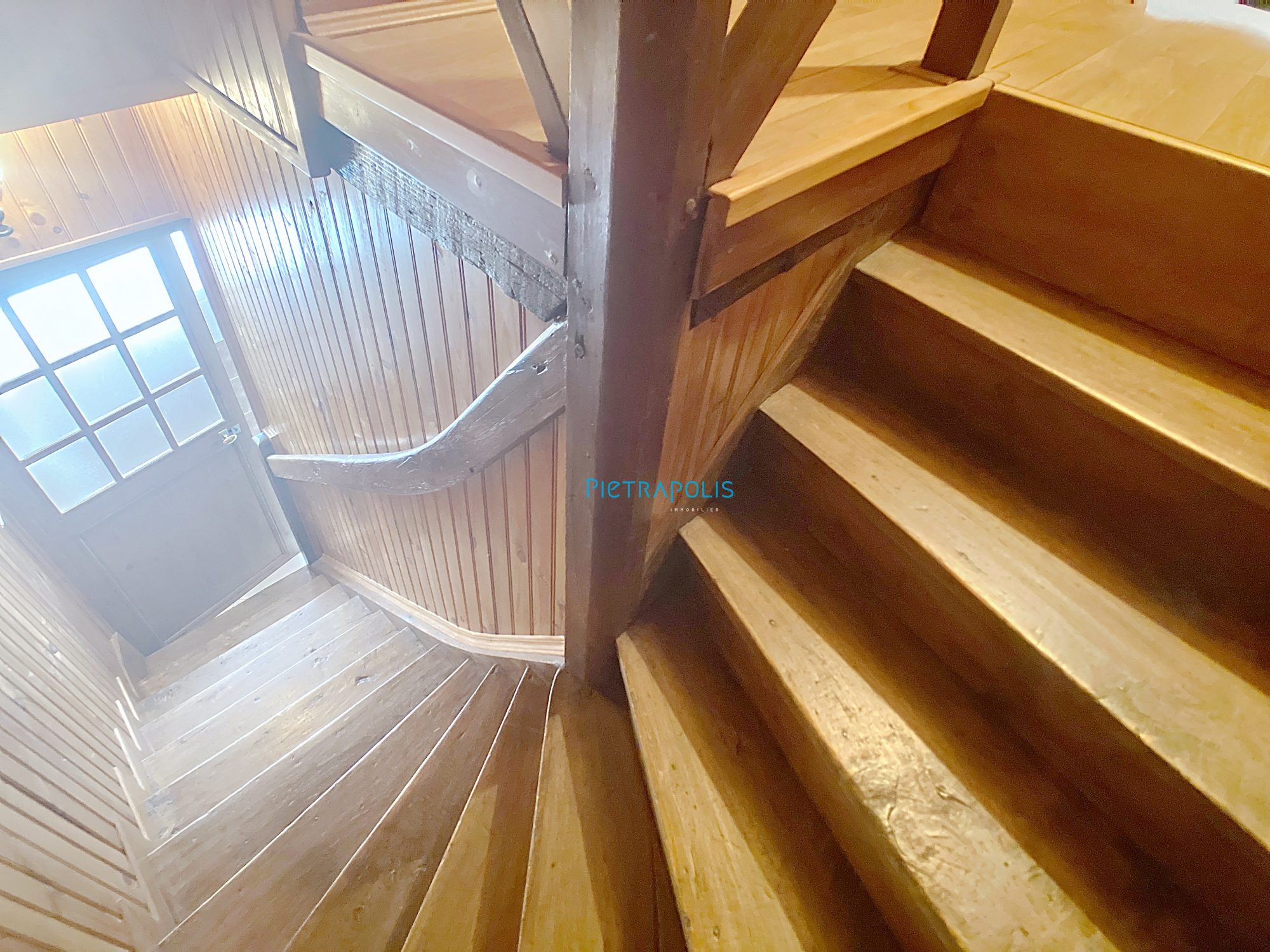 Coté technique : fenêtres bois double vitrage - volets bois battants - chaudière au gaz de ville - parquets bois massif sur une partie de l'étage