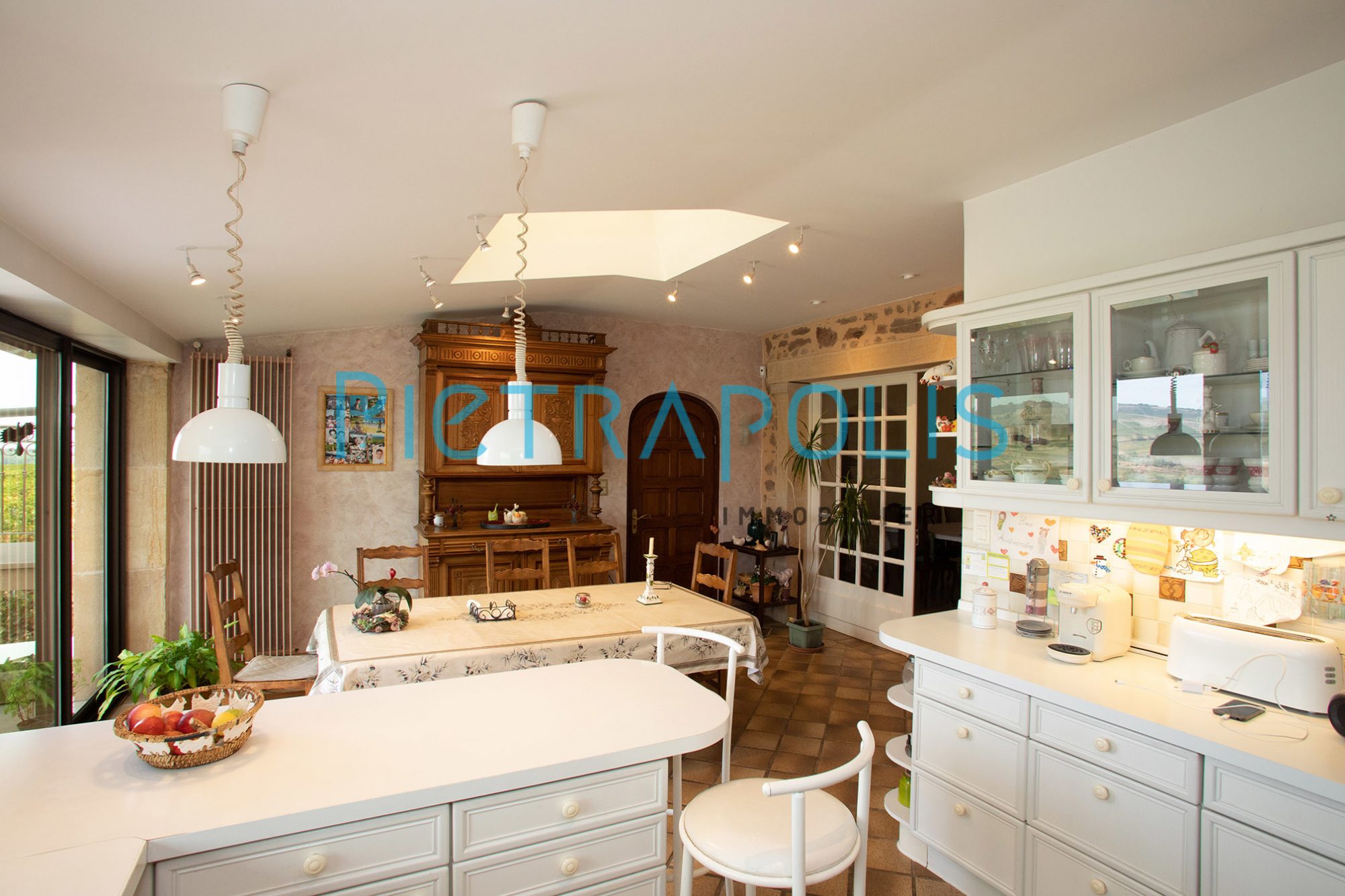 La partie privative se compose, au rez-de-chaussée d'une pièce de vie de 50 m² avec sa cheminée suivie d'une très belle véranda. Une cuisine dinatoire et son arrière cuisine de 30 m² environ donnant sur un balcon avec une vue exceptionnelle pour des repas en famille et entre amis.