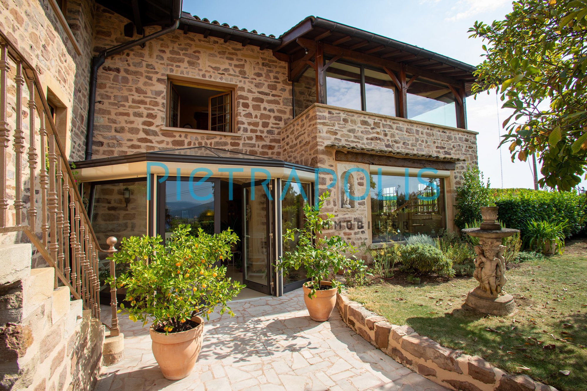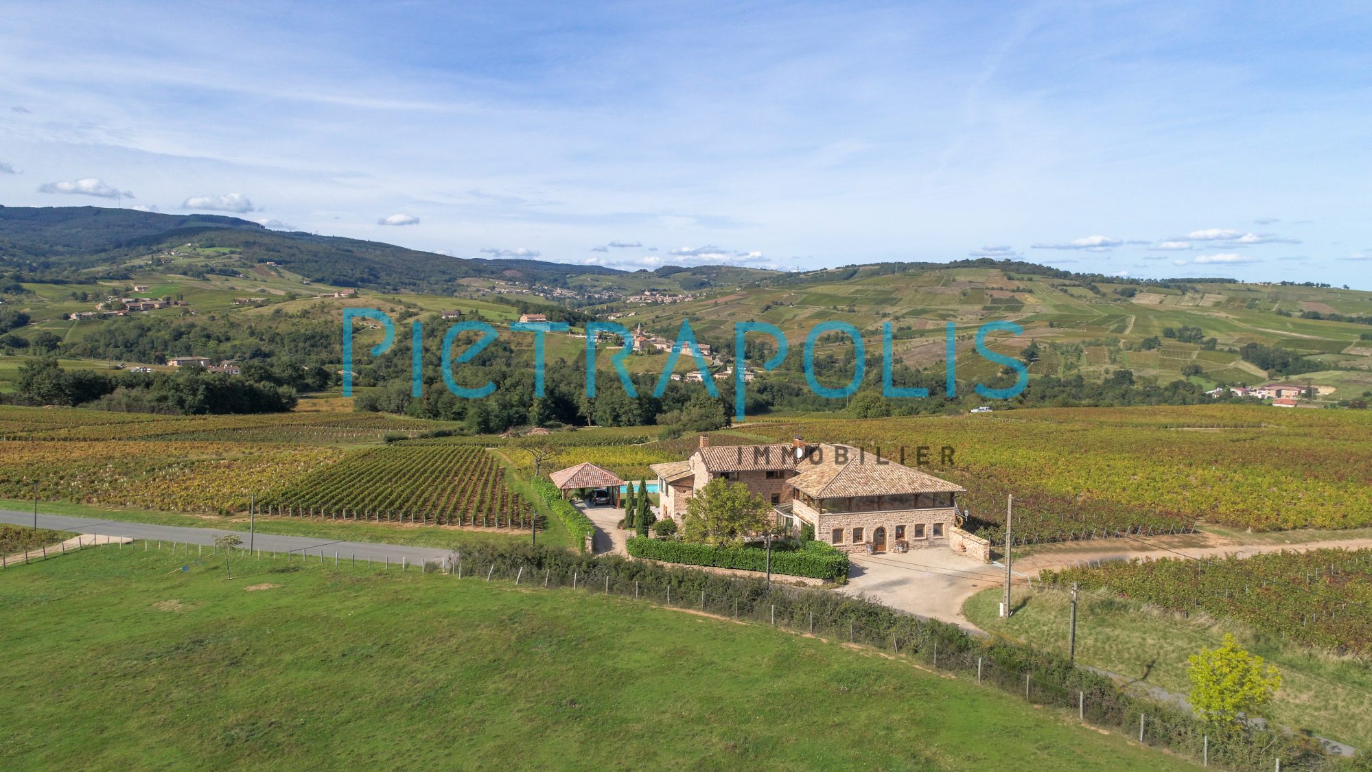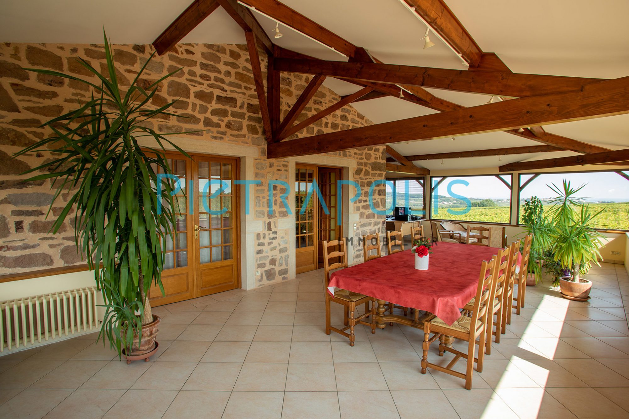 Venez découvrir au coeur des crus du Beaujolais - sud Bourgogne, une magnifique propriété en pierre de 450 m² environ, édifiée sur une parcelle de terrain de 2155 m² dont 600 m² de vigne Bio en fermage pour laquelle 48 bouteilles de vins vous seront remises chaque année.