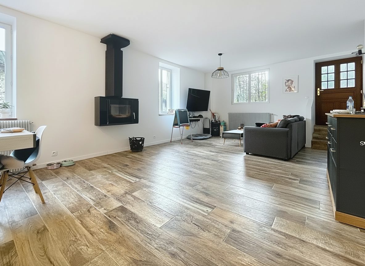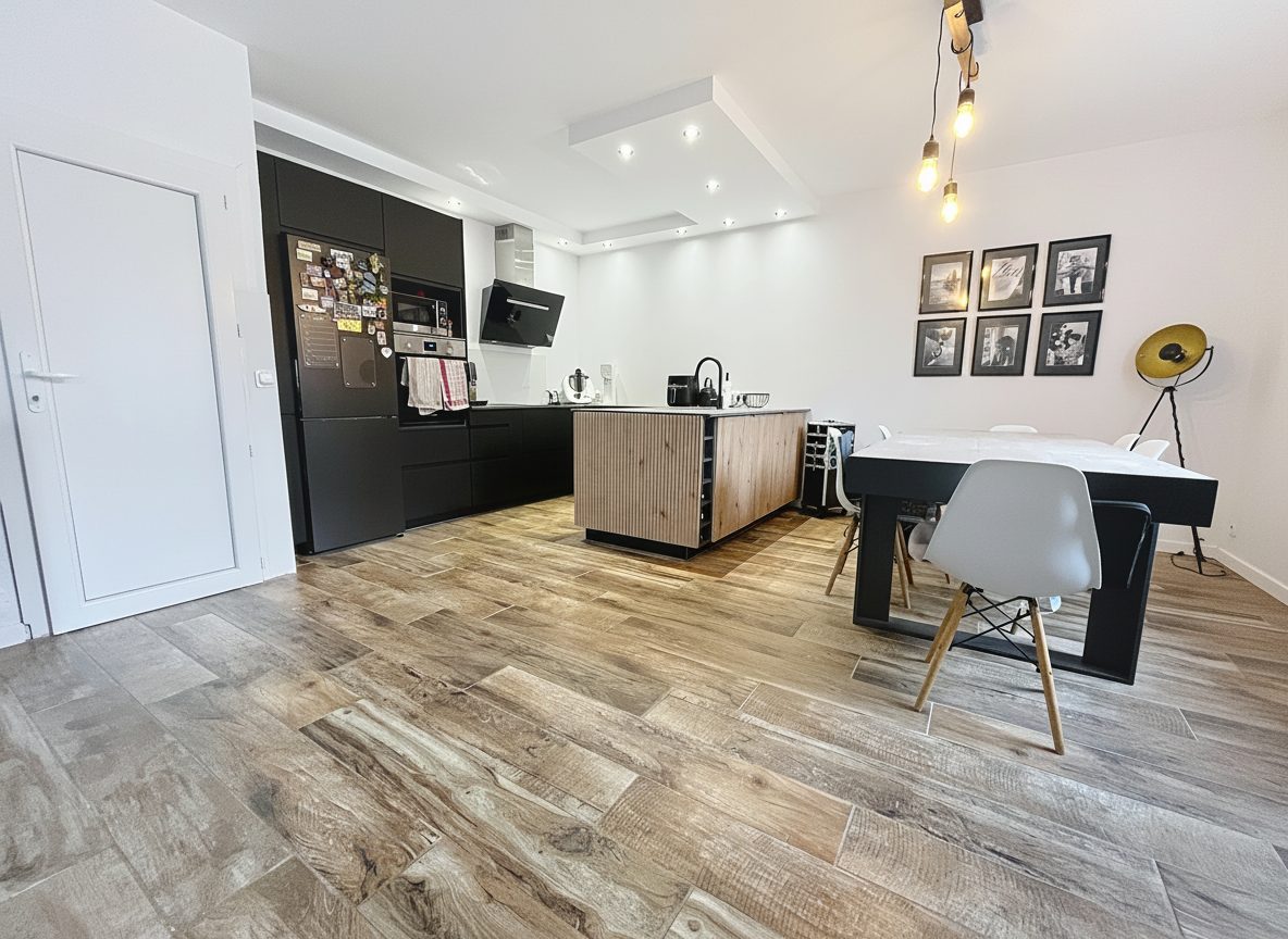 Au 1 er étage, un vaste séjour de 60 m² baigné de lumière vous accueille, parfait pour des moments conviviaux en famille ou entre amis. La cuisine, aménagée et équipée il y a un an, est très fonctionnelle. Un WC indépendant complète ce niveau.