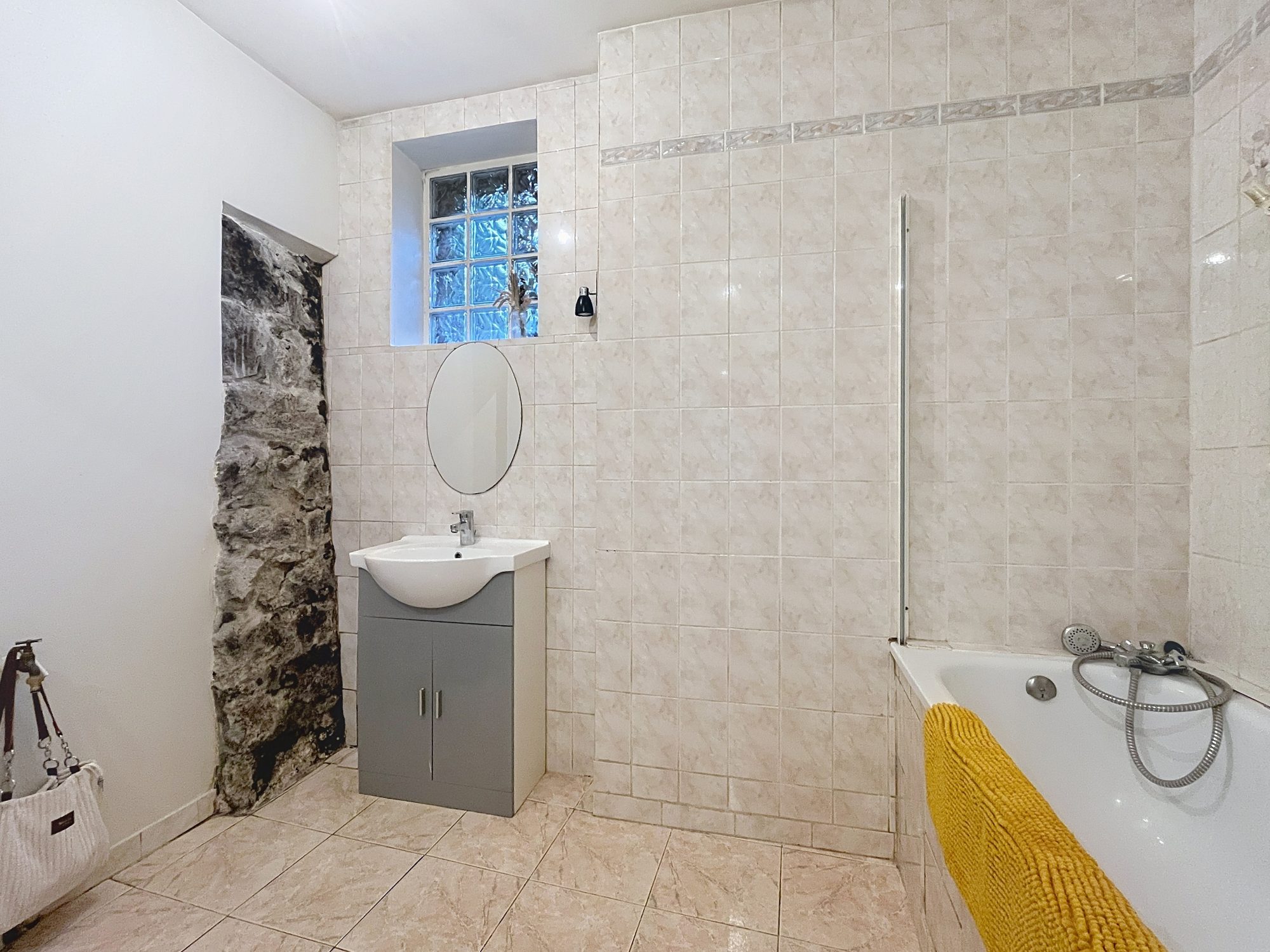 Au RDC : Deux garages totalisant environ 60 m², une cave ainsi qu’un puits alimenté naturellement par la roche.