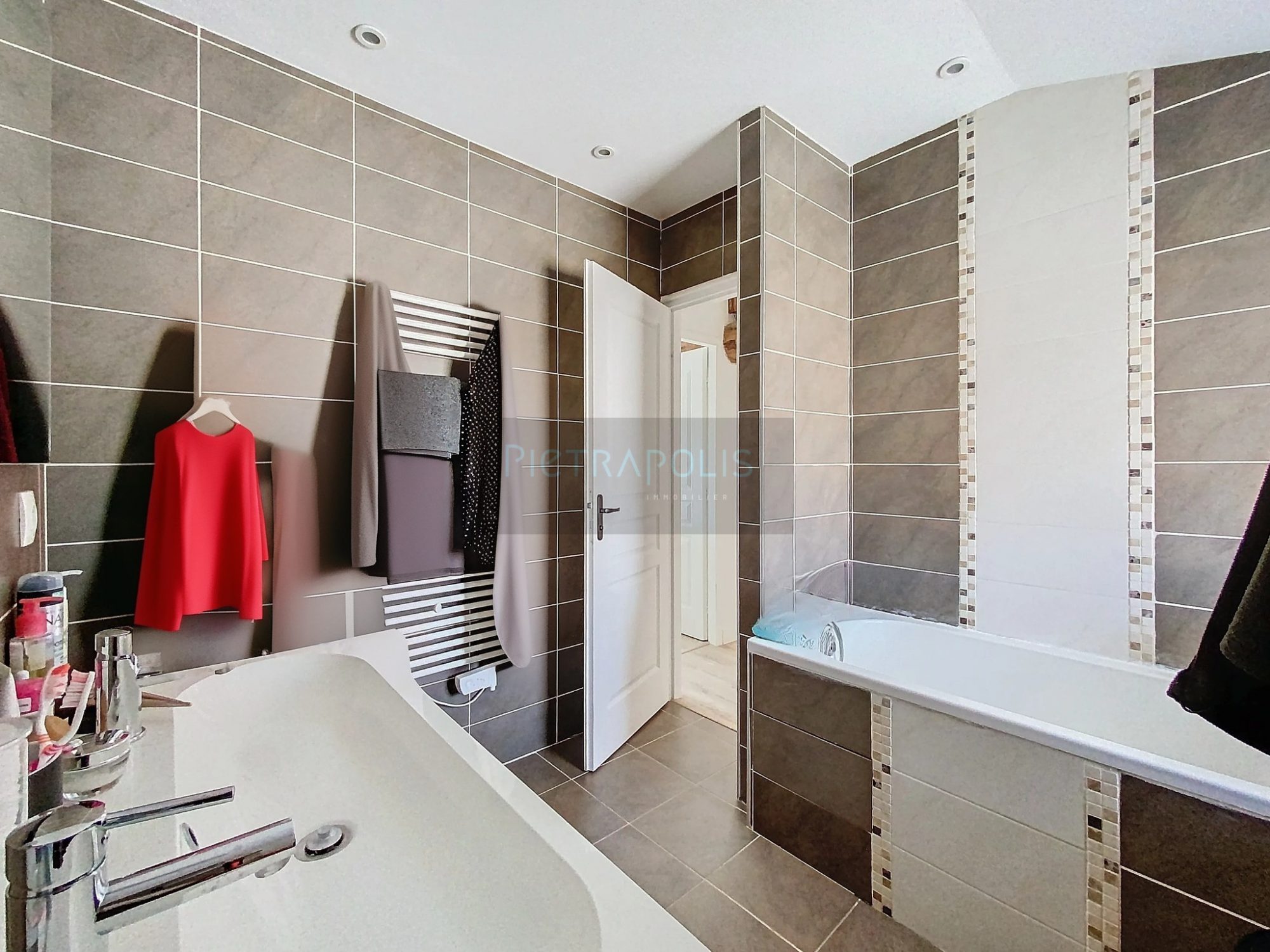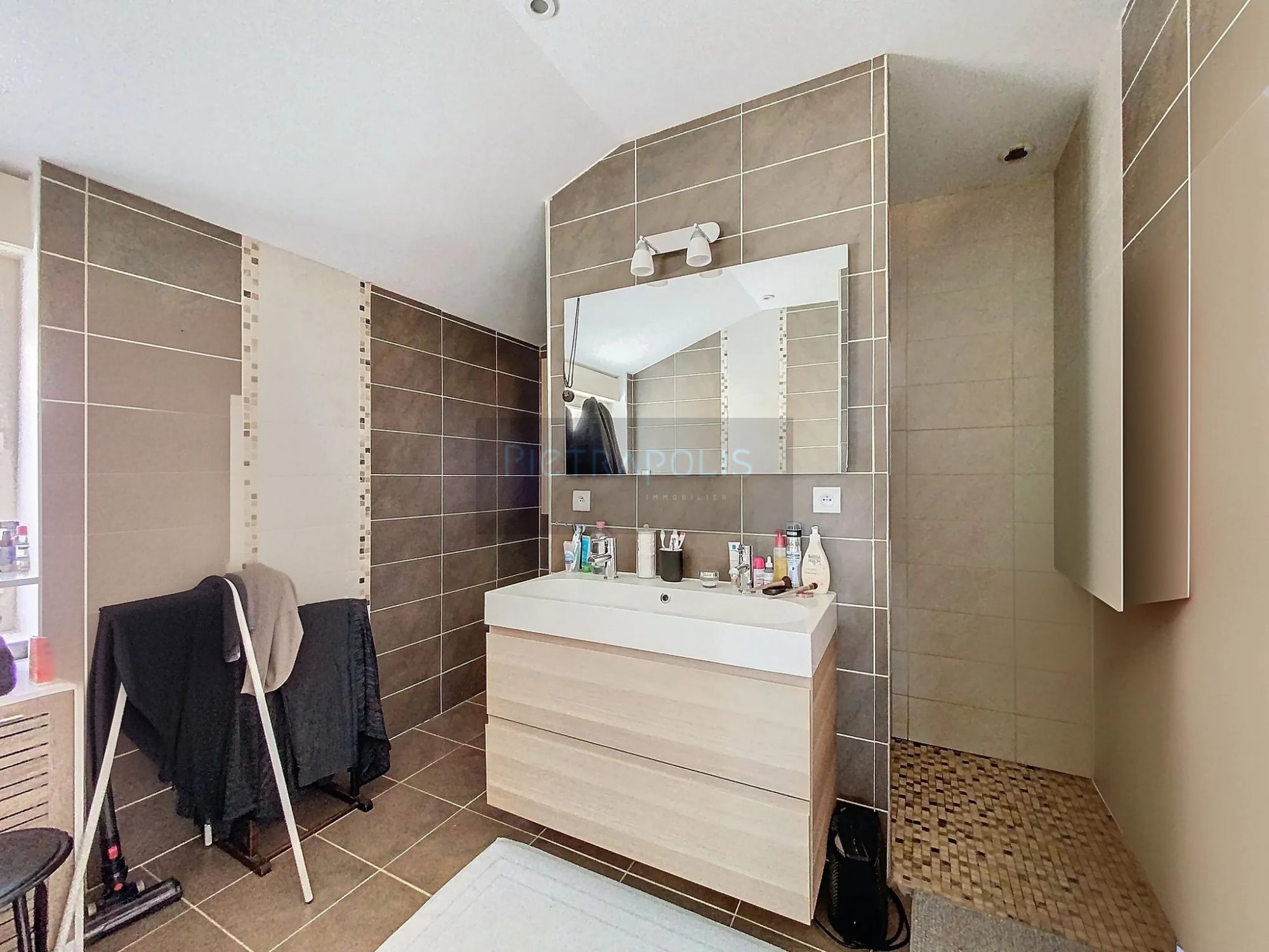 La salle de bains moderne et les deux toilettes indépendants assurent un confort quotidien optimal. La maison est bien isolée avec de la laine de verre et possède une toiture en tuiles, garantissant une excellente performance énergétique.