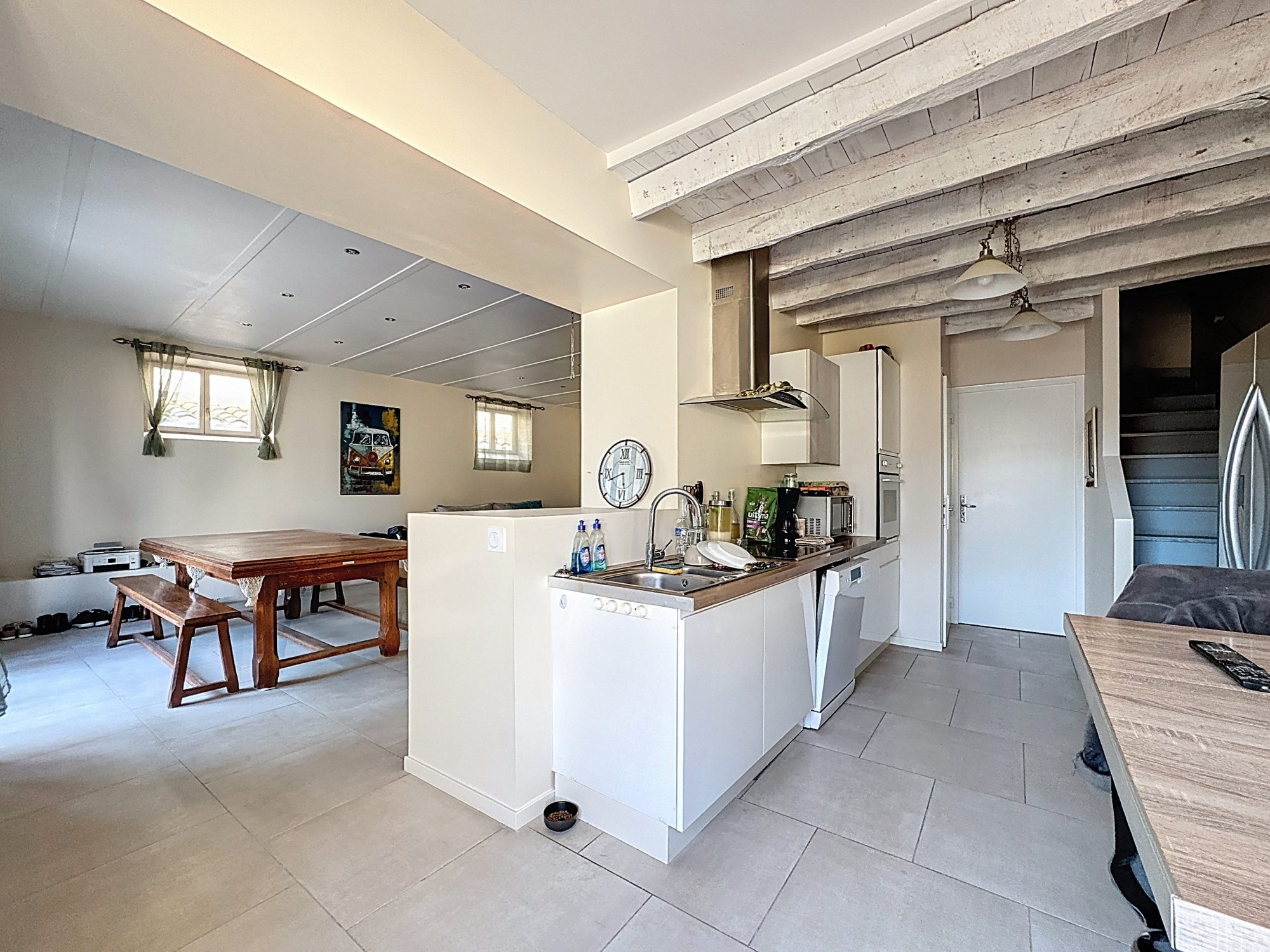 Cette maison, parfaitement rénovée, offre des espaces de vie bien pensés et fonctionnels. Le salon spacieux et lumineux est idéal pour vos moments de détente en famille ou entre amis. La cuisine séparée, moderne et entièrement équipée, vous permet de préparer vos repas dans un espace pratique.