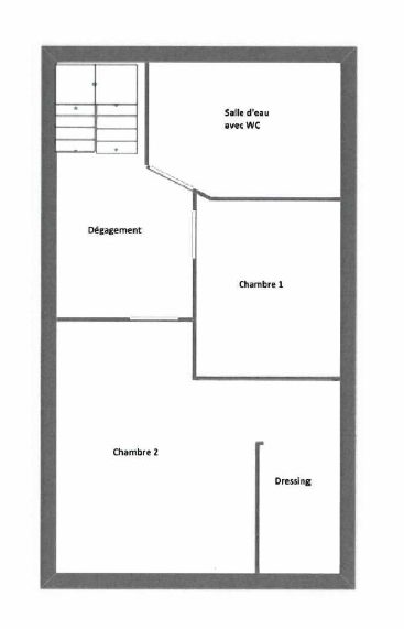 Au niveau supérieur : 2 chambres - 1 salle d'eau avec toilette et dégagement pouvant servir de bureau ouvert.