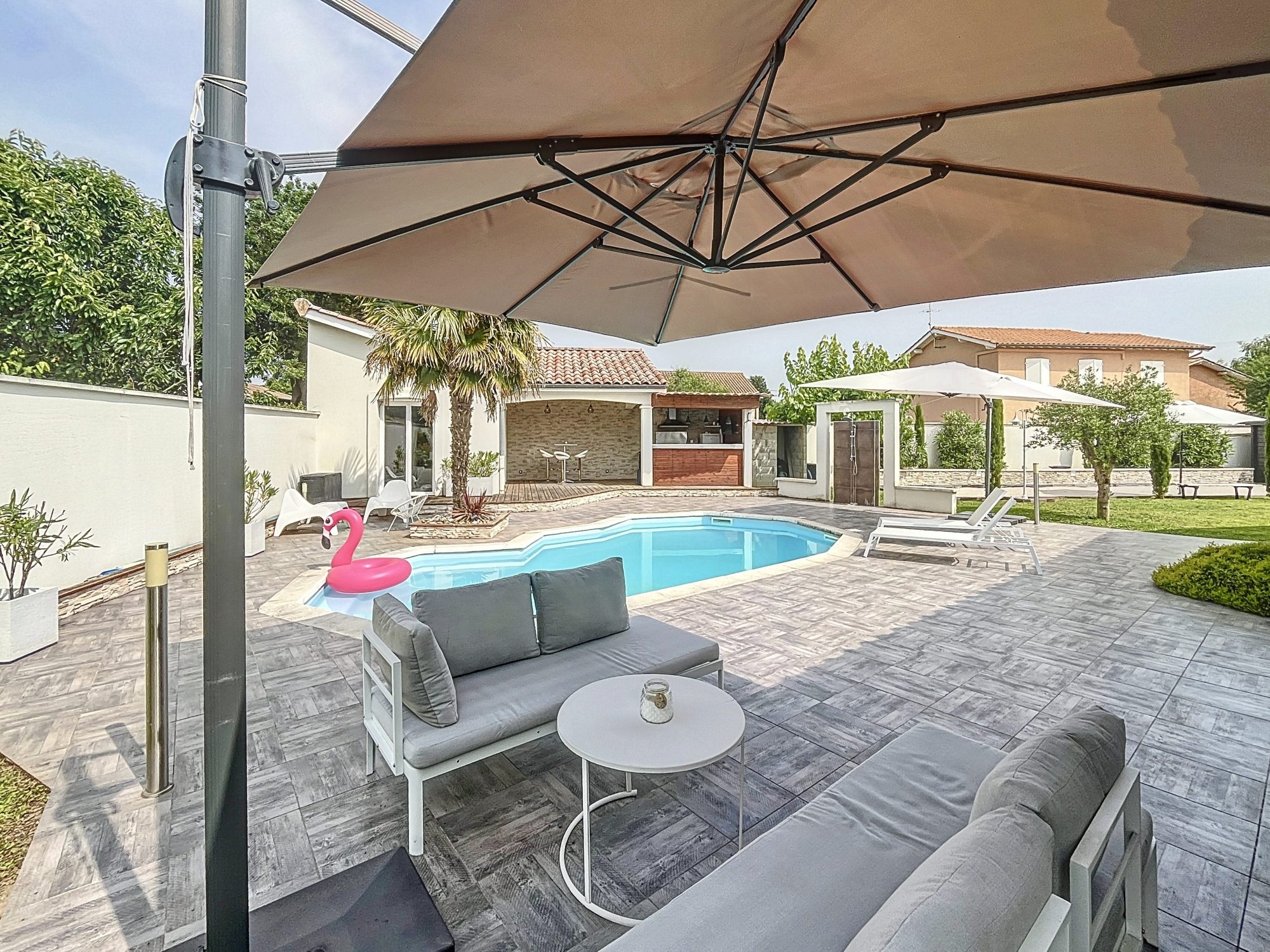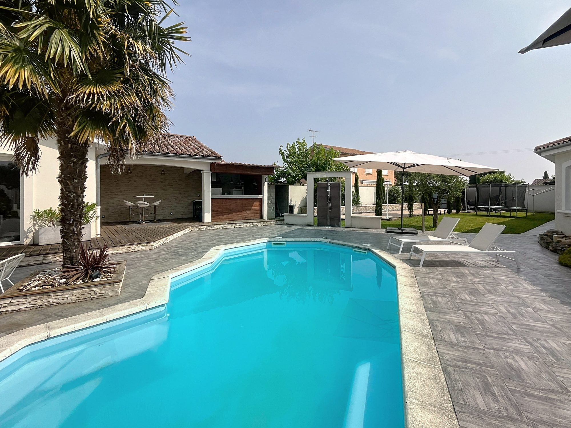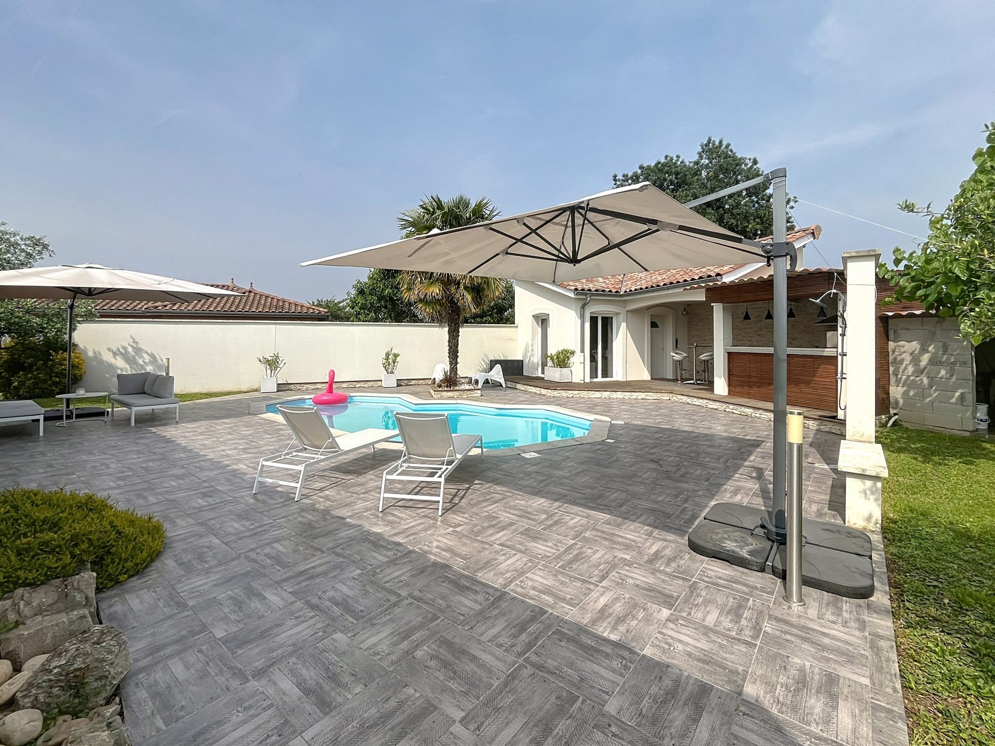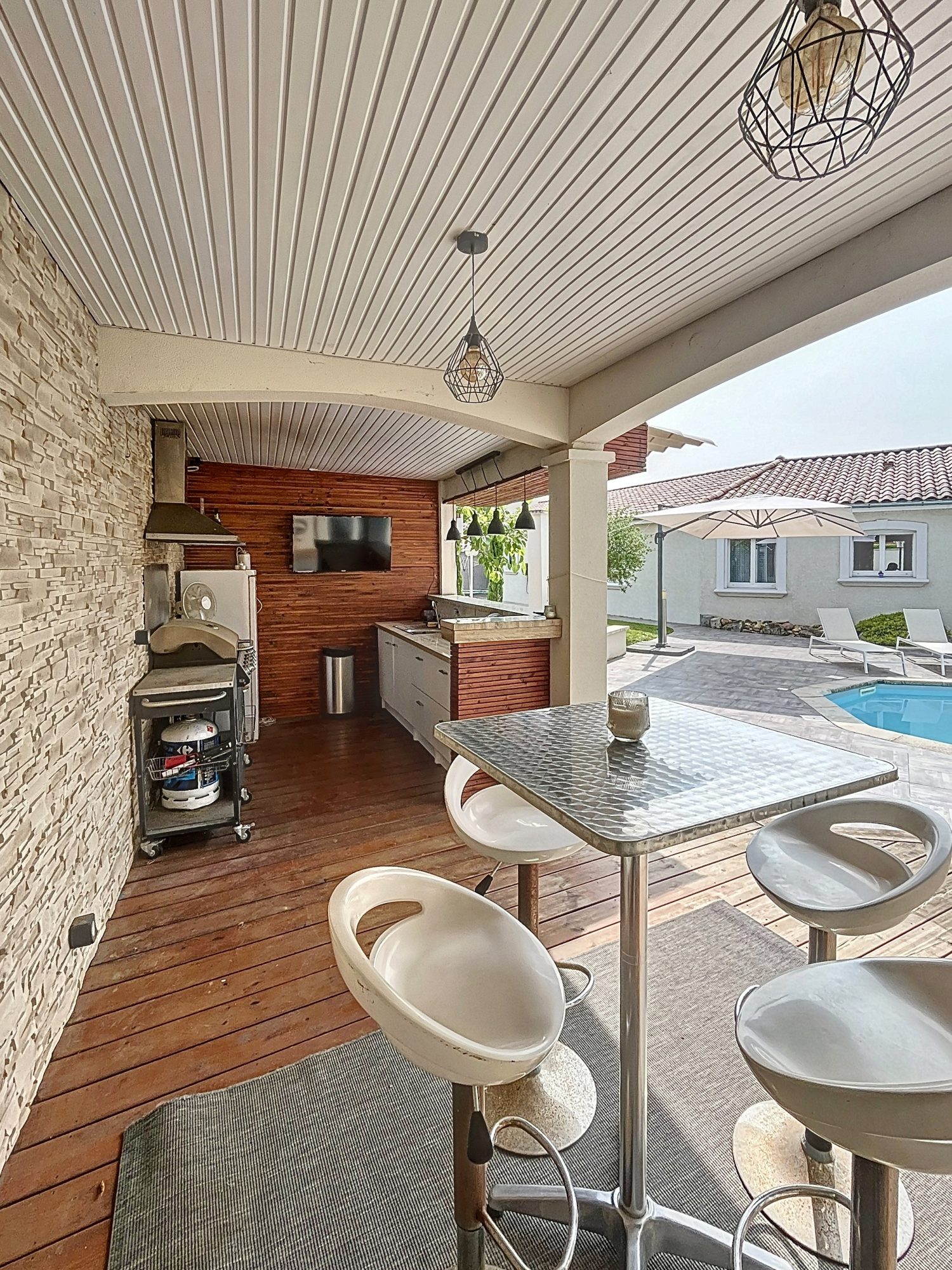 Extérieur : Une belle terrasse avec pergola, une piscine chauffée, une cheminée, une cuisine d'été ( inclus Télé, réfrigérateur et barbecue ), un terrain de pétanque, un cabanon, des espaces verts entretenus et aménagés et une dépendance de 18 m2 à finaliser ( Adolescent, amis, famille, Airbnb ).