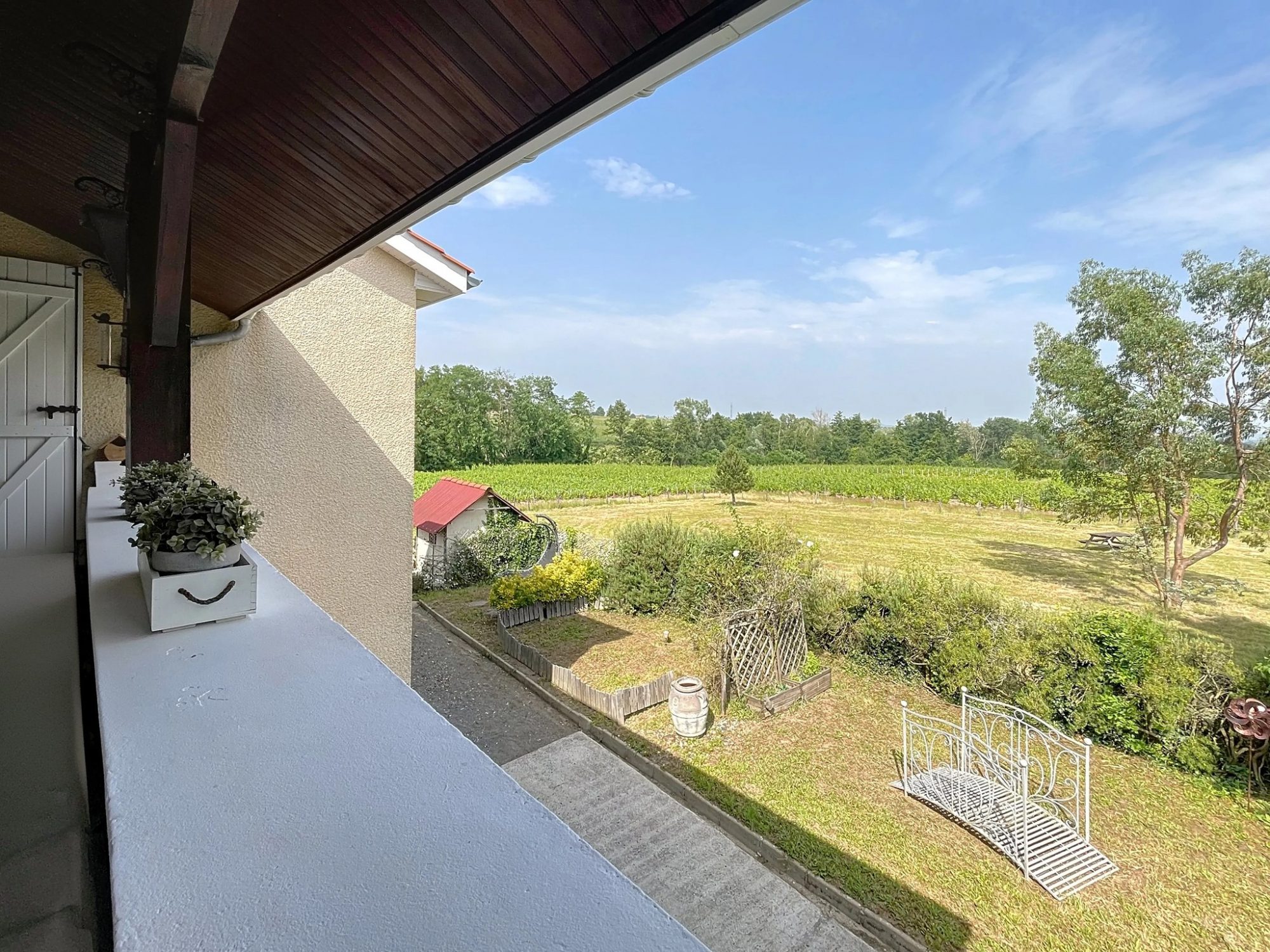 Le tout est implanté sur un terrain de 2 580 m², arboré et soigneusement aménagé. Vous profiterez d’un abri de jardin, d’un préau, ainsi que d’une grande terrasse au rez-de-chaussée, parfaite pour les repas estivaux ou les moments conviviaux entre amis. À l’étage, une seconde terrasse couverte vous offrira un espace privilégié pour déjeuner tout en admirant la vue dégagée, quelle que soit la saison.