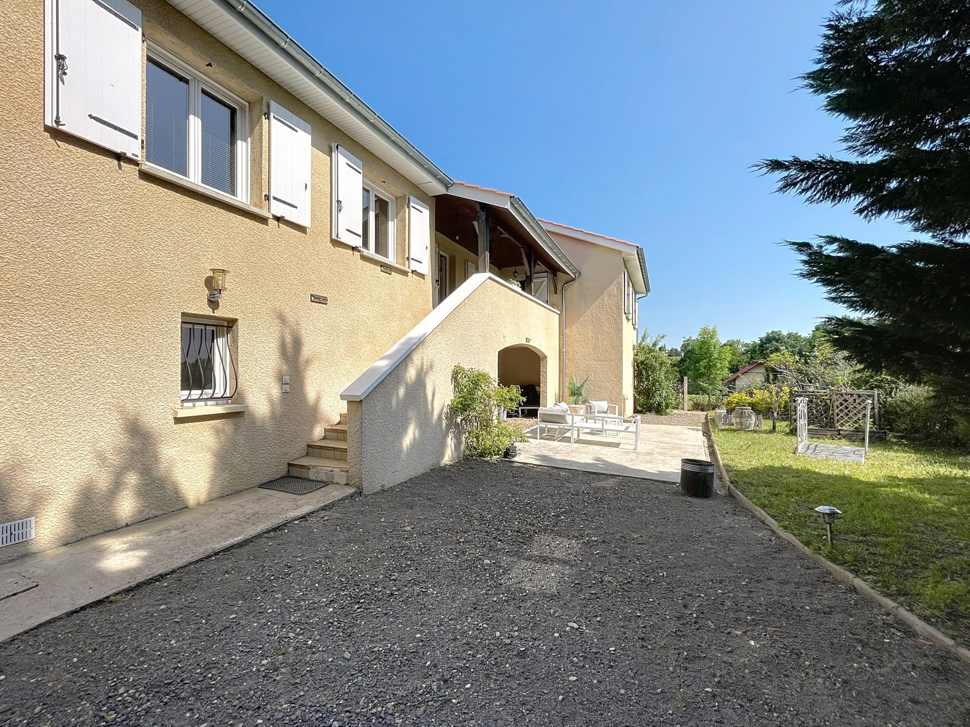 Située à Chénas, à seulement 5 minutes de la gare de Romanèche et à mi-chemin entre Mâcon et Villefranche-sur-Saône, cette propriété offre plus de 300 m² de surface utile, dont environ 200 m² habitables.