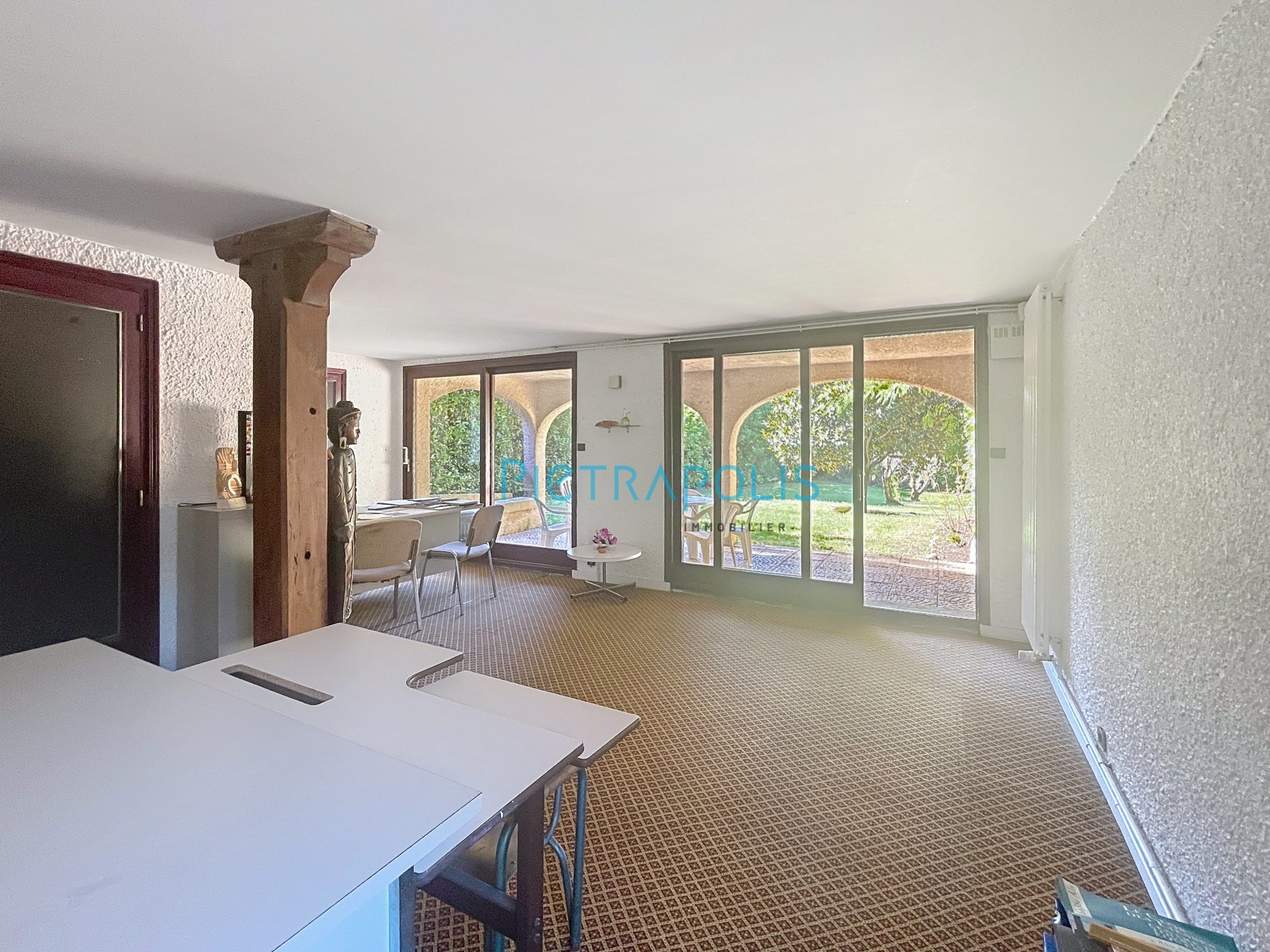 La singularité de ce bien réside indéniablement dans la possibilité qu'il offre d'exercer une activité professionnelle grâce à son accès indépendant de la partie habitation qui mène à un bureau d'env 40 m² avec salle d'attente idéal pour artisan ou profession libérale.