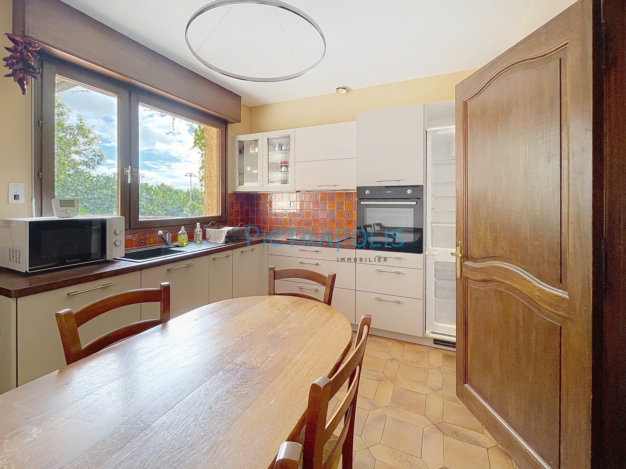 L'accès principale de plain pied ouvre sur l'entrée, puis vient la cuisine indépendante donnant sur une belle terrasse exposée Sud Est.
