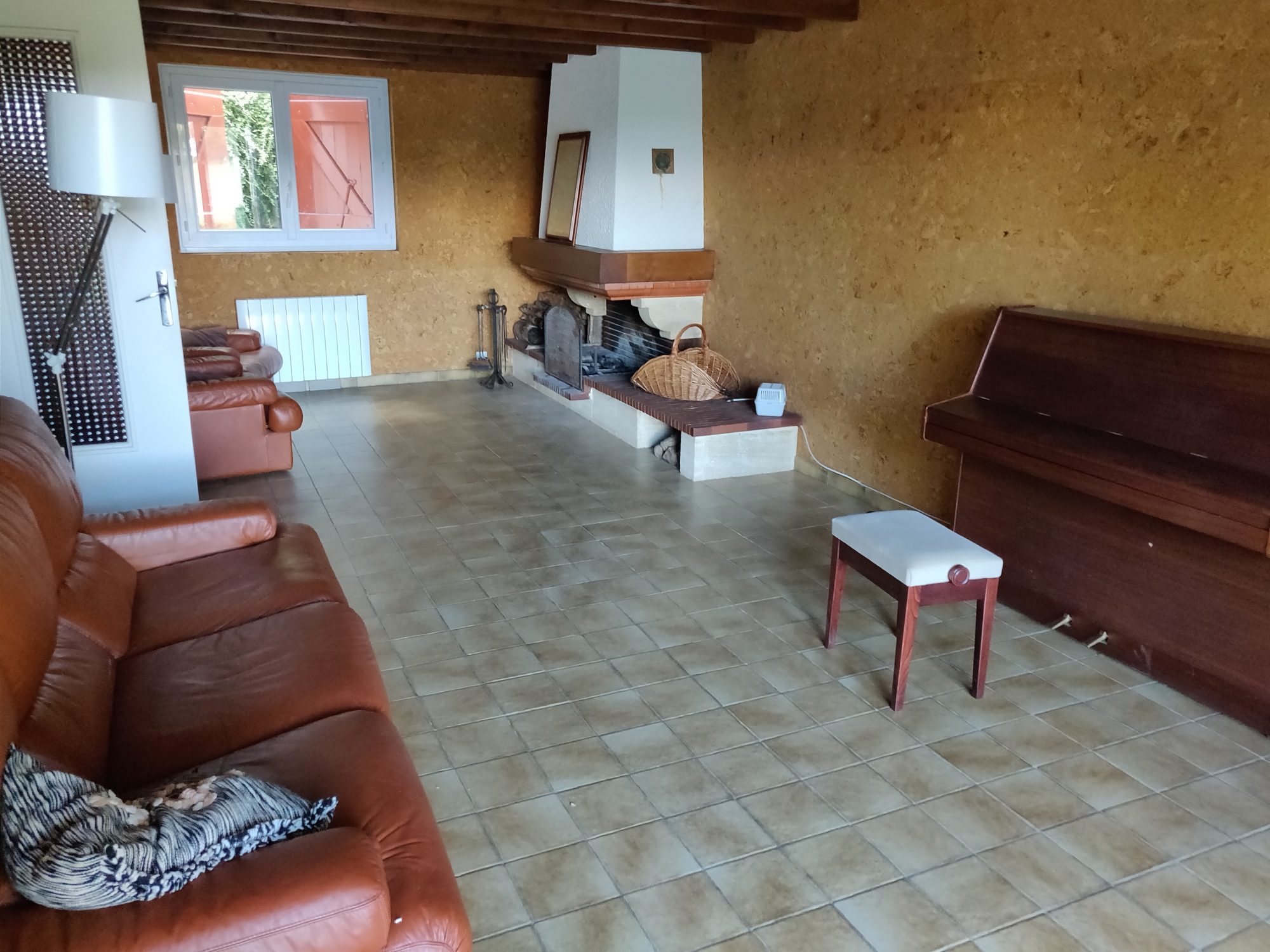 Au RDC : Un atelier ou cellier, une entrée, un salon traversant avec une cheminée, une salle à manger, une cuisine, une salle de bain ( avec baignoire et douche ) et un wc.