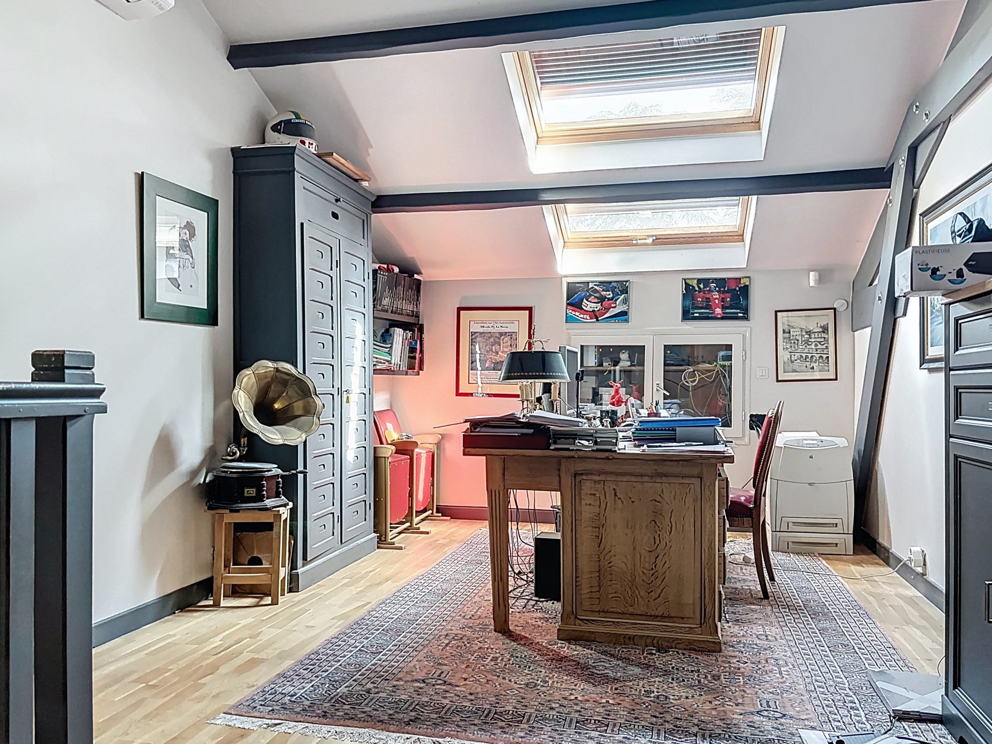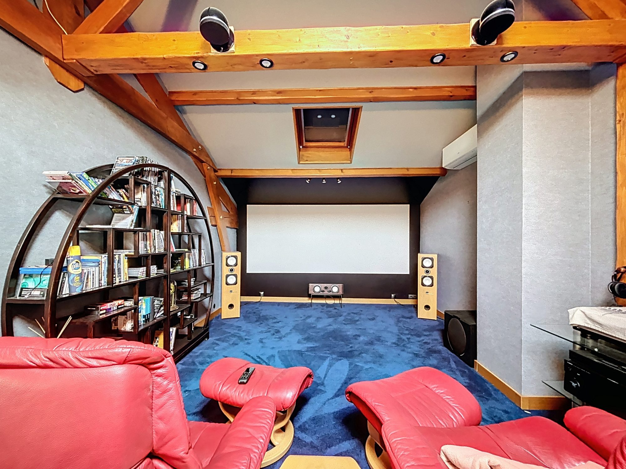 Au premier étage, vous trouverez une mezzanine aménagée en bureau ainsi qu’une la salle de cinéma, le tout climatise.