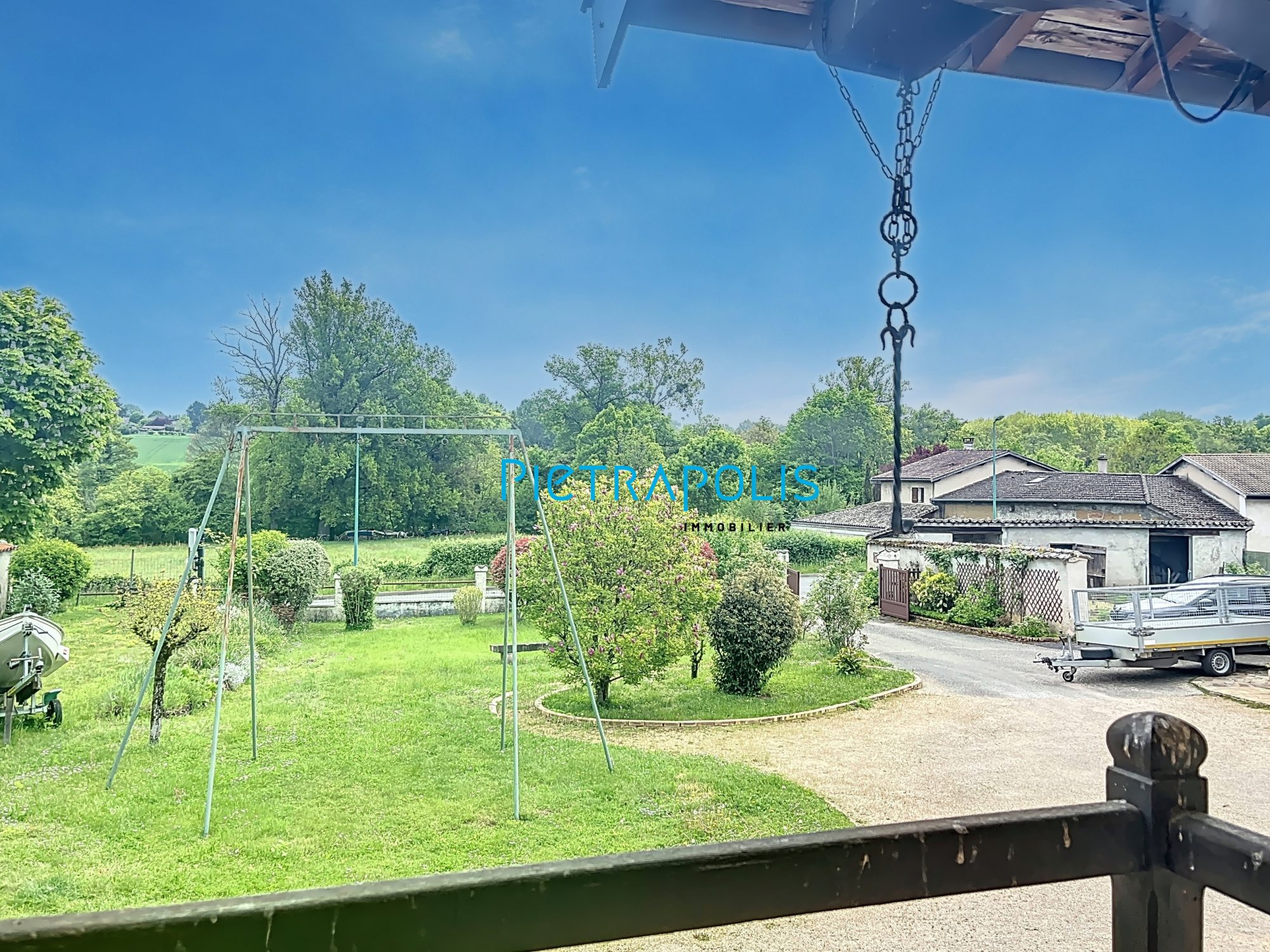 La vue sur la campagne environnante est à couper le souffle, offrant une sensation de tranquillité et de sérénité. L'exposition est-ouest garantit une luminosité optimale tout au long de la journée.
