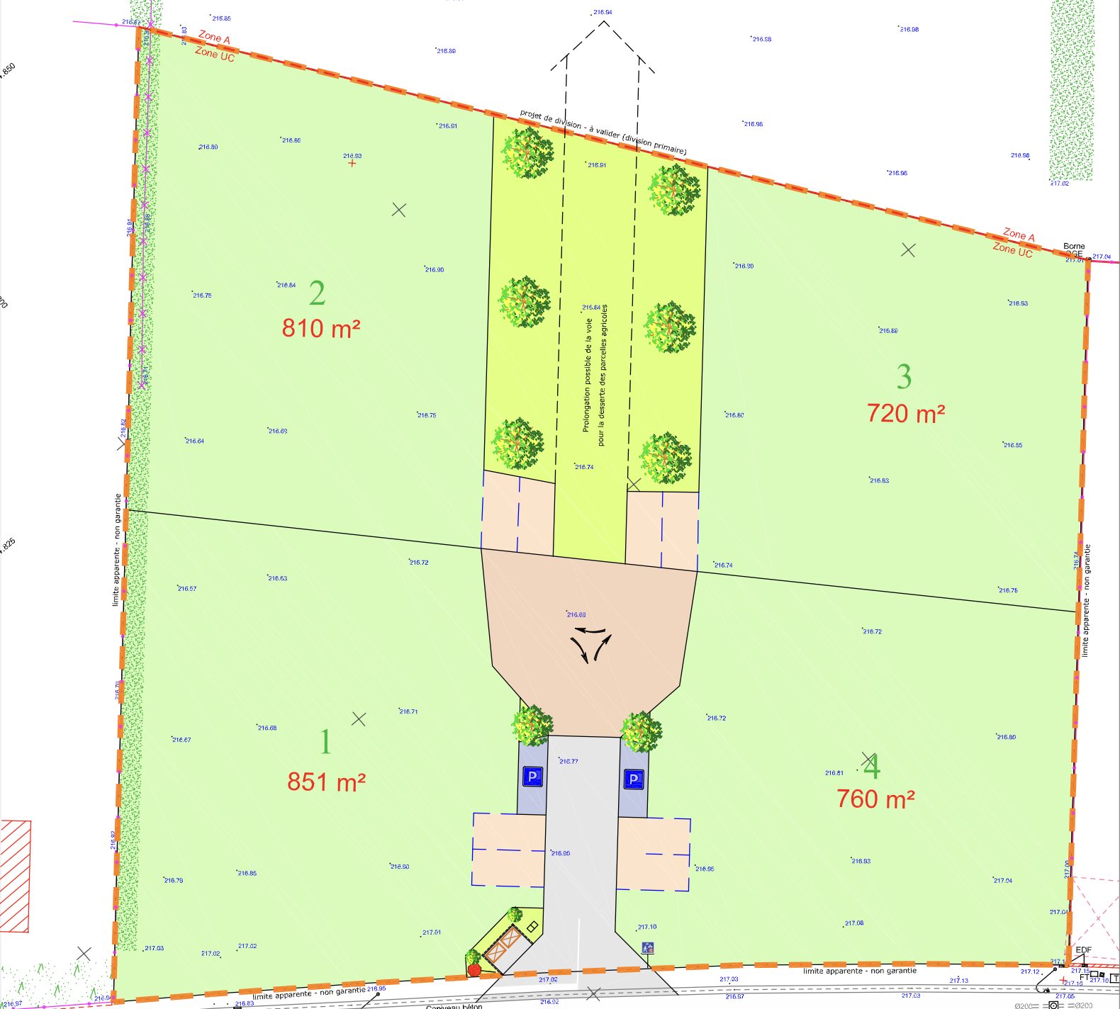 Terrains entièrement viabilisés à partir de 720 m² jusqu'à 851 m² dans un environnement résidentiel.